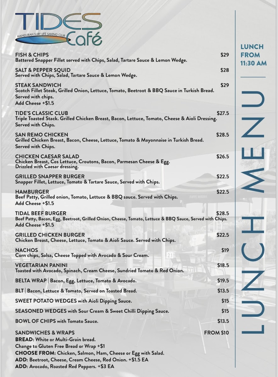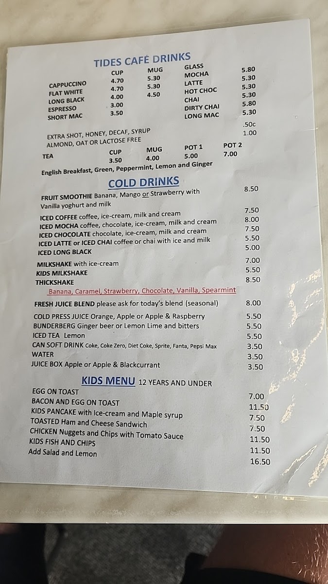 Tides Cafe Menu